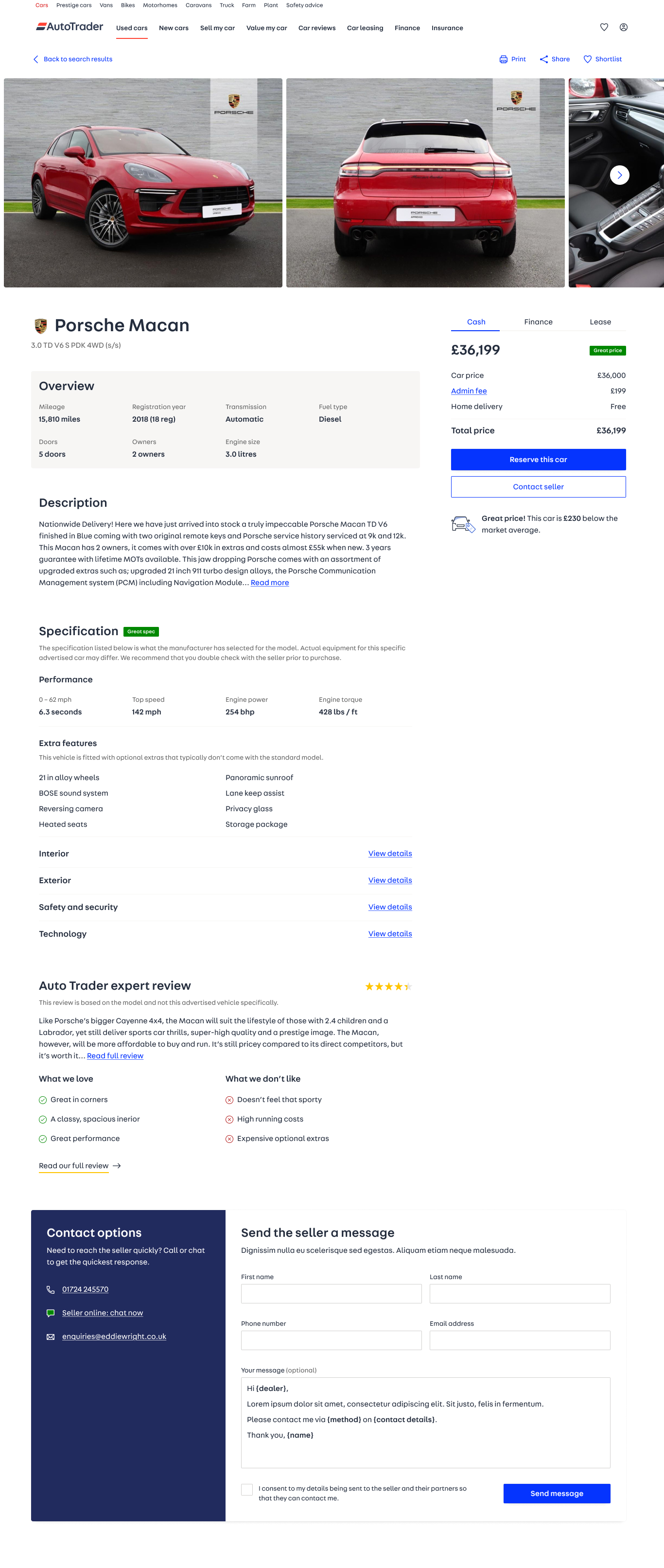 By the time I left two years later, I had founded Auto Trader's first design system, led the rebuild and expansion of the design team following a significant organisational change, and collaborated closely with leadership to evolve the product and design ways of working across the business. I was responsible for the consumer experience across website and app, working closely with the Product Director to define and deliver a research-led redesign of the full end-to-end journey.